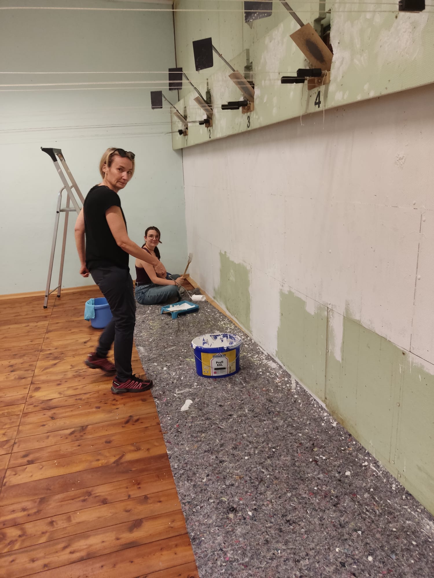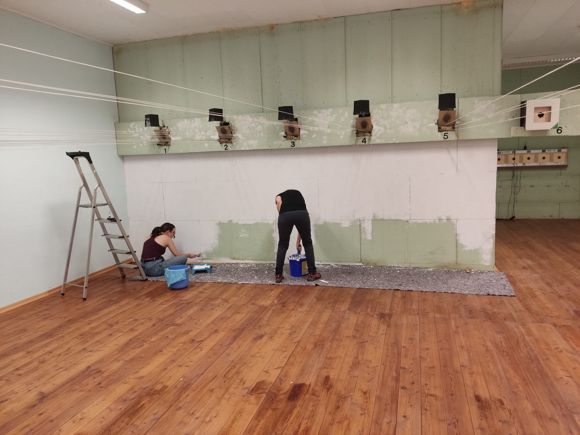 Spontaner Arbeitseinsatz da der Schießstand zu dunkel wurde. Ein paar helfende Hände halfen mit den Kugelfang in hellem weiß erstrahlen zu lassen. Viele Hände schnelles Ende!