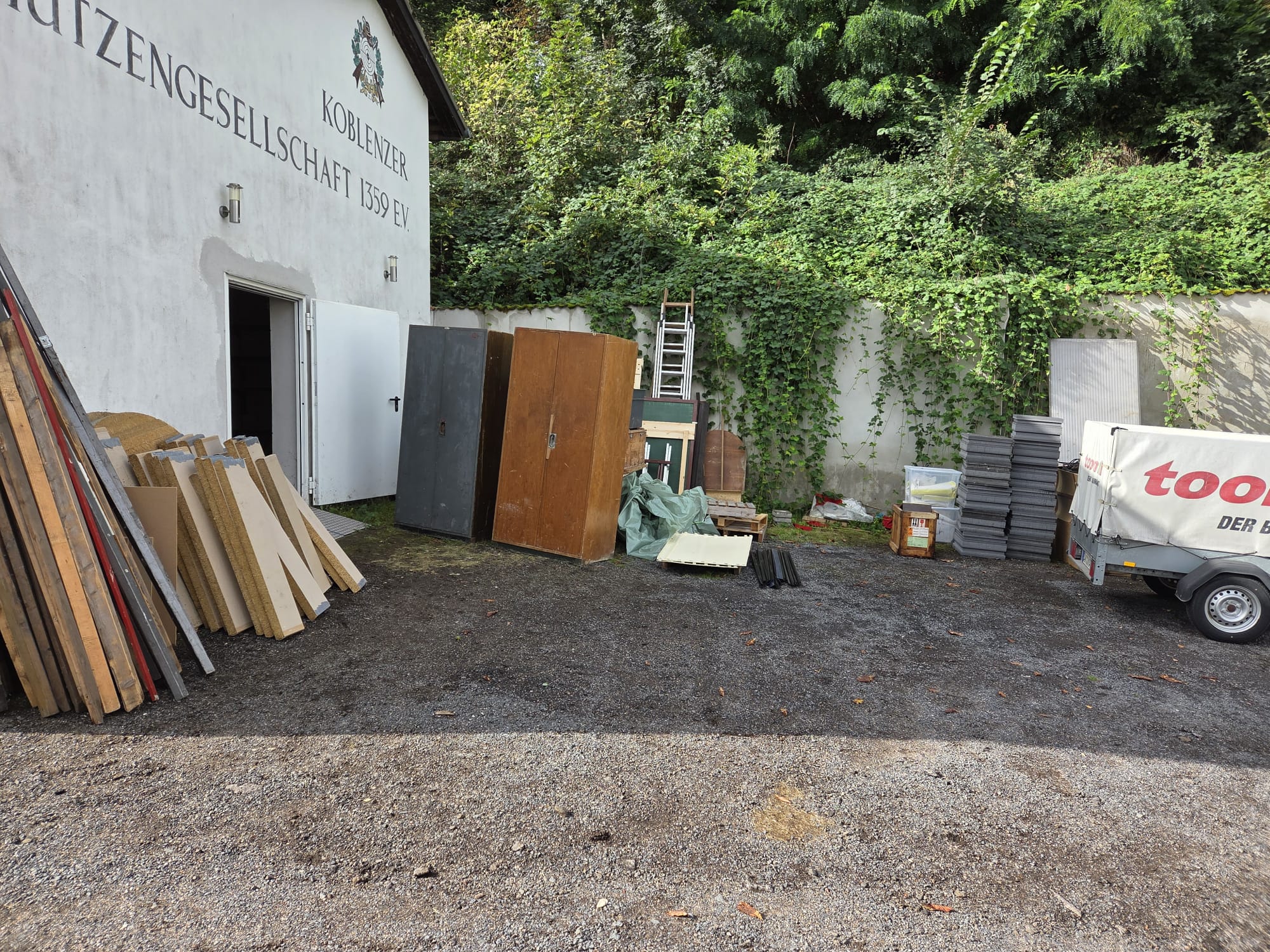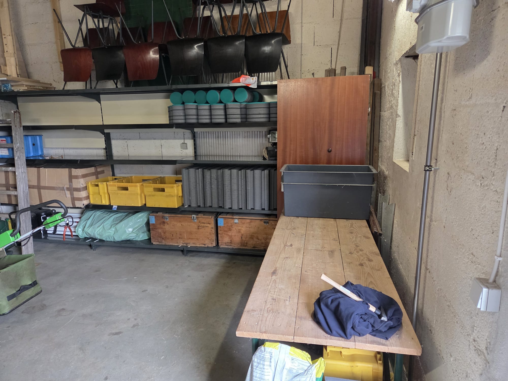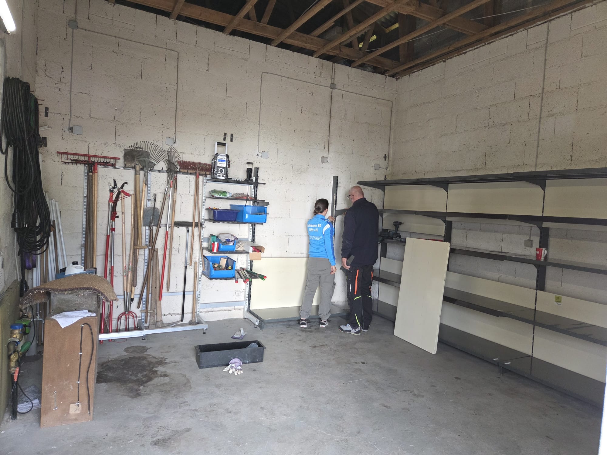 mit zwölf Helfern wurde beim Arbeitseinsatz viel geschafft. Umgebaut wurde diesmal unter anderem unsere Garage. Der Abtransport der alten Schränke und der noch vorhandenen Stramitscheiben verlief ohne Komplikationen. Die neuen Schwerlastregale wurden sogar schon eingeräumt.